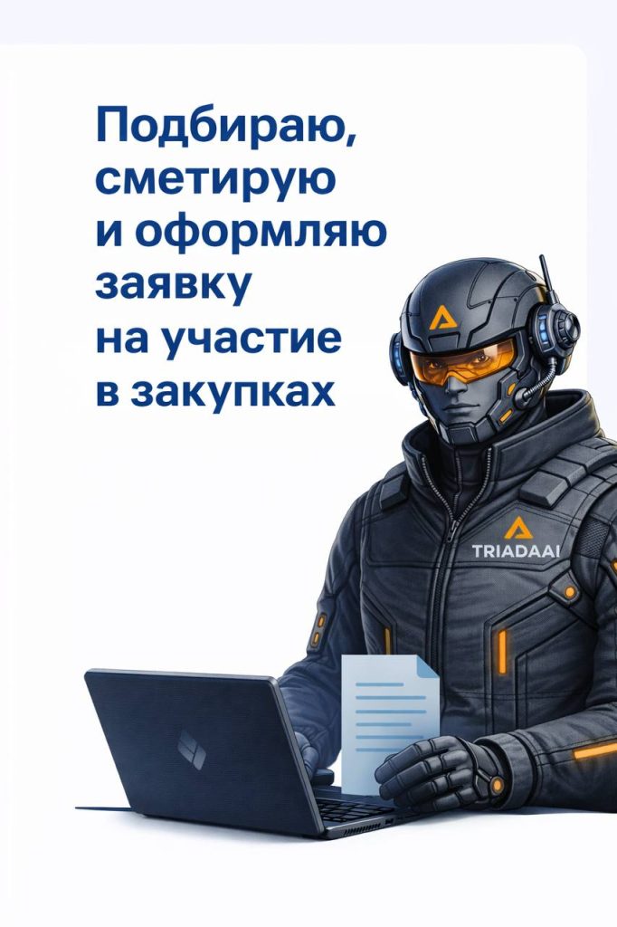 ИИ для тендеров (или тендерный искусственный интеллект) — это интеллектуальная система, разработанная экспертами Фирмы Триада, предназначенная для автоматизации работы с закупками.