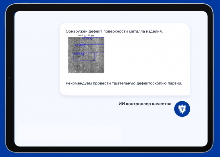 Внедрим искусственный интеллект в контроль качества и благодаря этому существенно снизим количество дефектов на производстве.
