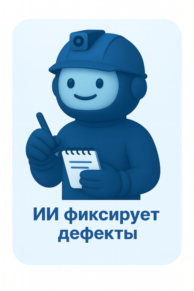На базе искусственного интеллекта мы внедряем решения, которые позволяют самостоятельно находит дефекты, сигнализирует оператору и формирует отчёты. Вот как это работает: