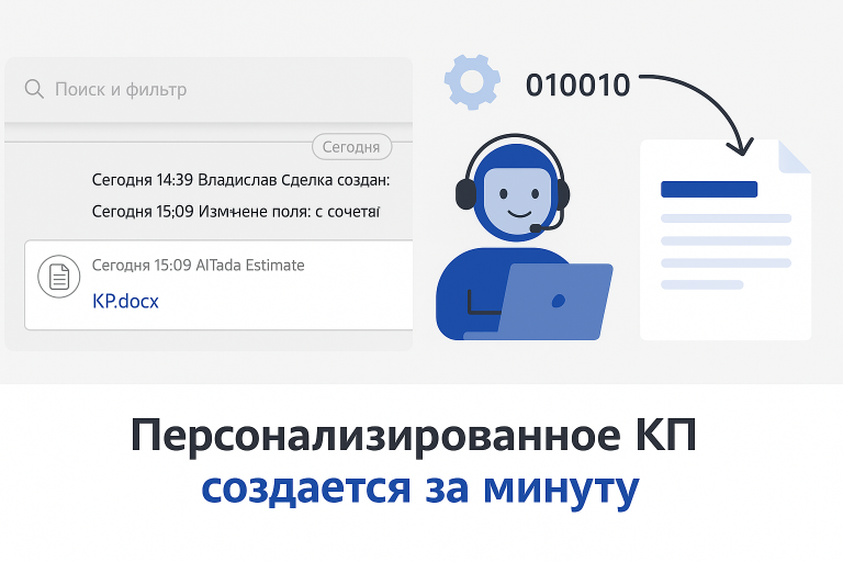 вместо 30–60 минут на ручную сборку предложение формируется автоматически за пару минут.