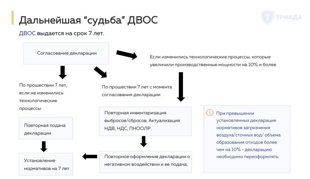 В течение 30 дней с момента подачи декларации могут быть получены корректировки от Росприроднадзора, которые необходимо внести в декларацию. После уведомления Росприроднадзора о получении и согласовании ДВОС считается принятой.